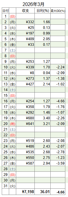 +7,198円の利益(月利+36.01%)です👍✨